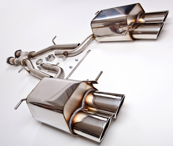 Geliefert wird die Edelstahl-Halbanlage komplett mit Montagematerial, EG-Betriebserlaubnis (keine TÜV-Abnahme notwendig) und Heckschürzenschablone (Pre-FL). Die Halbanlage wird direkt an den originalen Befestigungspunkten am Flansch montiert. Ein Durchtrennen der originalen Auspuffanlage ist nicht notwendig.